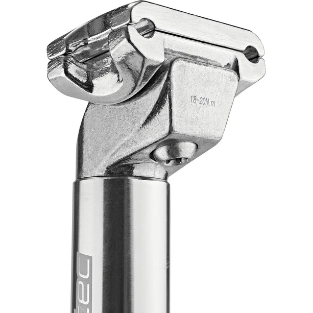 Tige de selle en aluminium brevetée, peu coûteuse, avec serrage à 1 boulon et décalage de 18 mm vers l’arrière. Pour les entretoises de 7 mm.