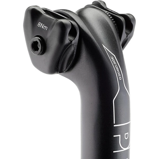 Permettant un ajustement facile avec une large plage angulaire, cette tige de selle propose dans cette version un recul de 20 mm.