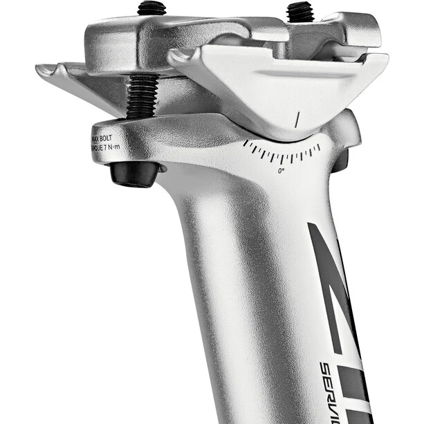 La tige de selle du Zipp Service Course est faite d’aluminium 6061 forgé en 3D et est incroyablement légère. Grâce au double serrage avec les têtes de vis dirigées vers le bas, un alignement optimal de la selle peut être obtenu rapidement et facilement.